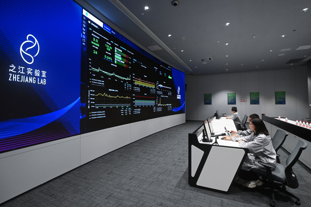 之江實驗室計算與數據中心的工程師通過“之江云”系統監測服務器集群的運行狀態(2022年6月23日攝)。新華社記者 黃宗治 攝