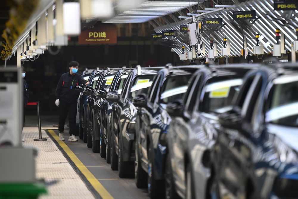 工人在領克汽車寧波余姚工廠總裝車間進行下線前的檢查工序(2023年1月5日攝)。新華社記者 黃宗治 攝