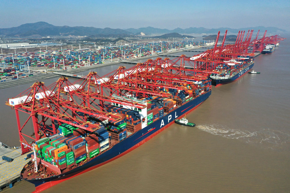 在東海之濱的寧波舟山港穿山港區,來自遠洋的萬噸巨輪正在靠泊,堆場上疊滿了世界各地發來的集裝箱。2023年,寧波舟山港完成貨物吞吐量超13.24億噸,同比增長4.9%。