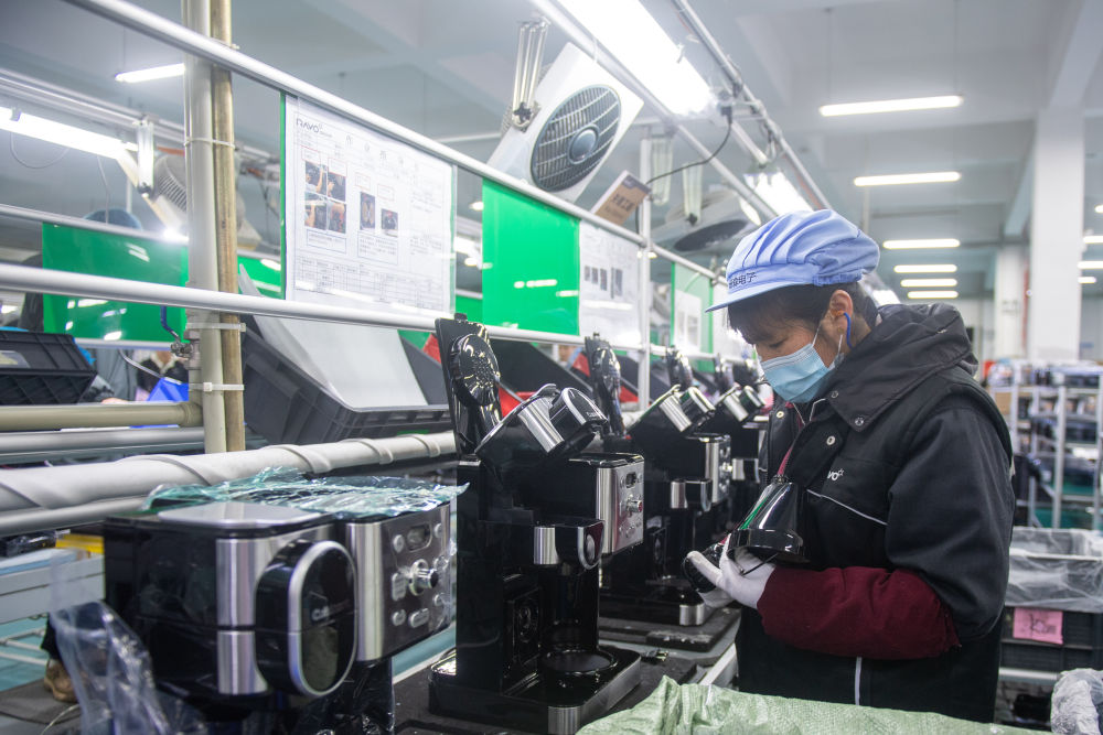 工人在寧波市江北區的寧波瑞孚工業集團車間生產小家電(2024年2月28日攝)。新華社記者 江漢 攝