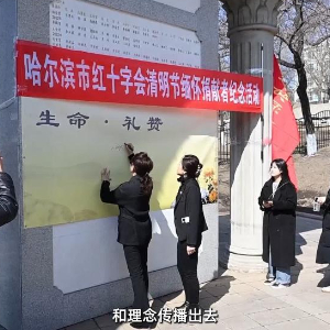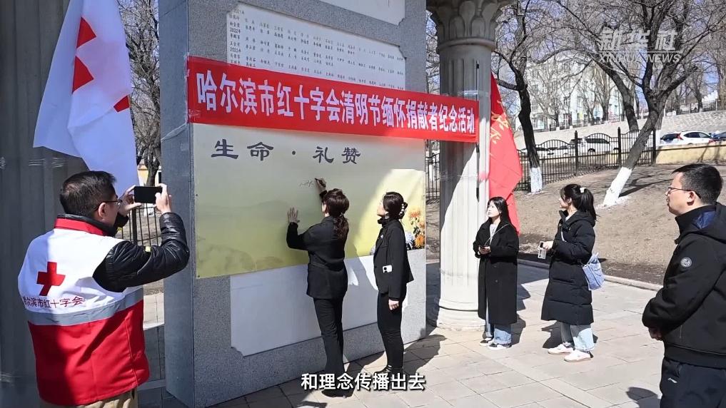 在位于中國東北的哈爾濱市向陽山革命公墓,有一塊特殊的紀念碑,上面鐫刻著遺體、眼角膜捐獻者的名字。