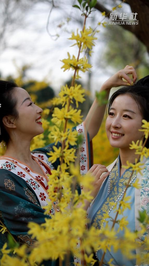 4月4日至6日,清明時節,北京世界花卉大觀園里春花初綻,草木萌發,第四屆“百花仙鄉·漢服名園”花朝漢服節活動正在舉行。