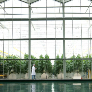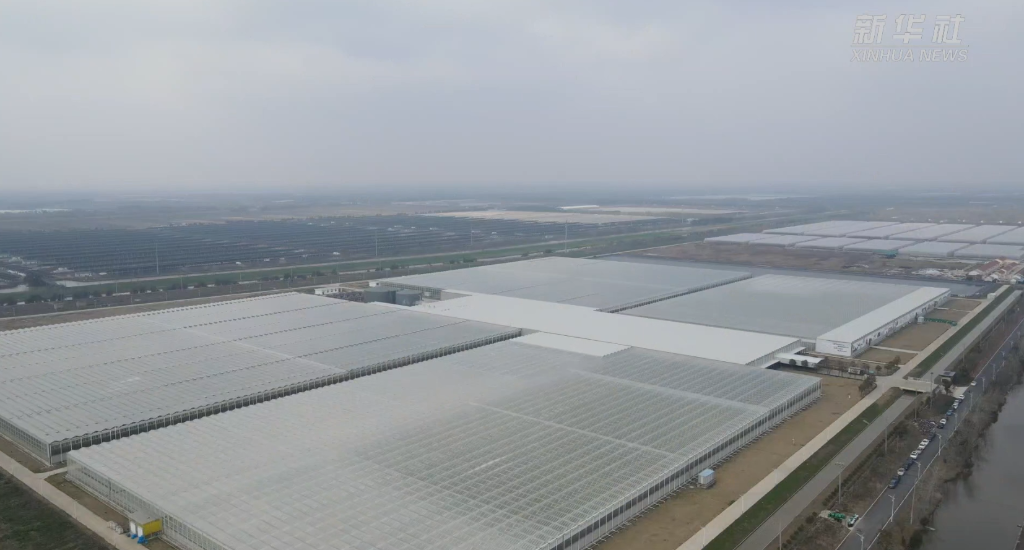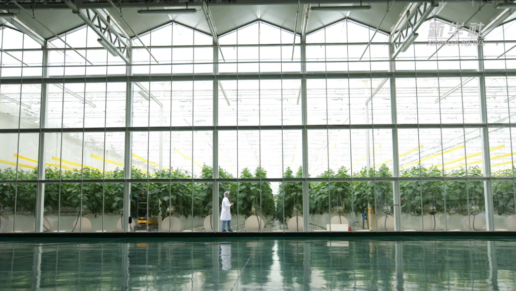 半封閉玻璃溫室里,西紅柿、黃瓜等蔬菜鮮嫩水靈,生菜等水培葉菜一片生機盎然……