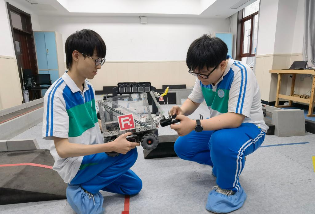 天津市匯文中學學生正在機甲大師課堂上。(受訪單位供圖)