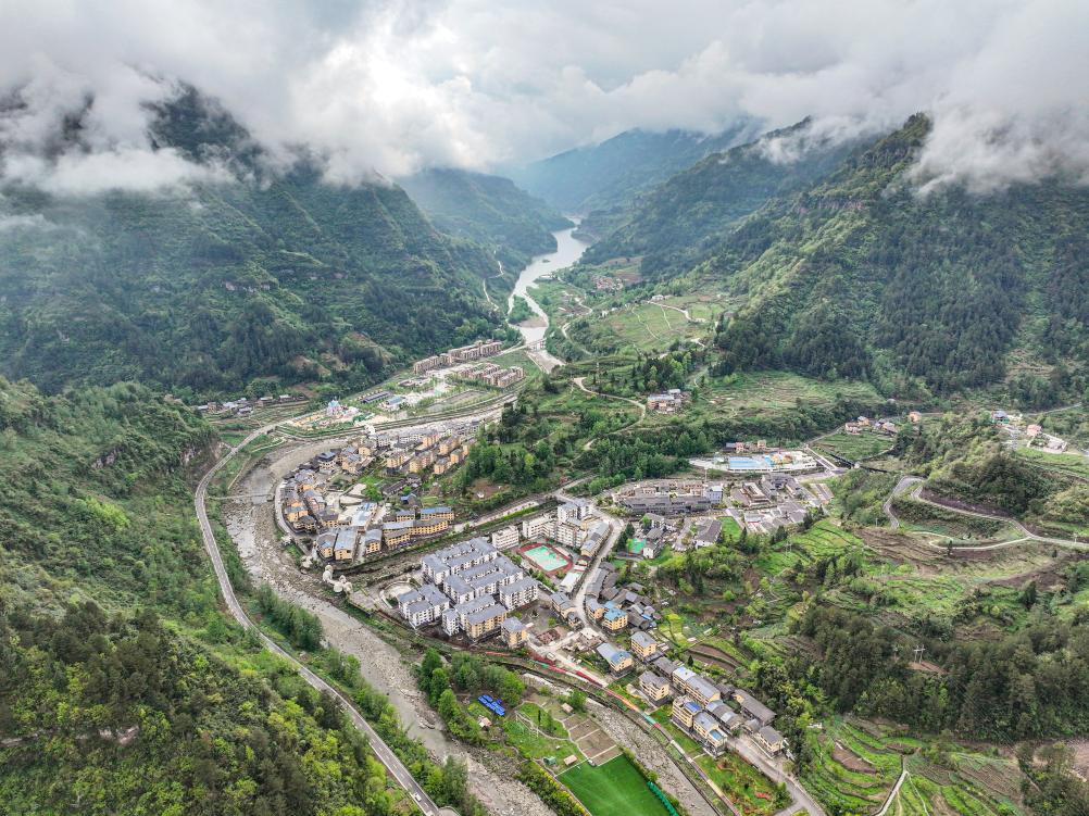 這是4月11日拍攝的重慶石柱土家族自治縣中益鄉景色(無人機照片)。新華社記者唐奕 攝