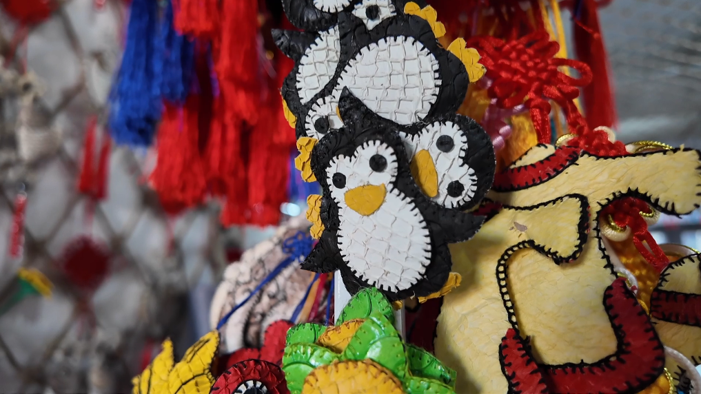 企鵝樣式的魚皮冰箱貼。新華社記者 丁赫 攝