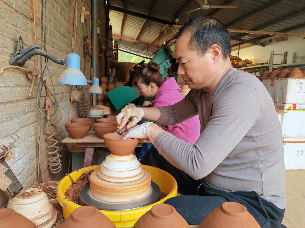 距離扁溪村不遠處,建陽區水吉鎮后井村村民廖成義的建盞作坊內,工人們正在為盞坯上釉。這些上完釉的盞坯在變成建盞成品之前,還要經過晾釉、裝窯、焙燒等多道工序。廖成義說,建盞是宋代八大名瓷之一,最近幾年,在電商平臺的帶動下,建盞的名氣越來越大,銷售版圖也從原先傳統的南方市場拓展至全國各地,慕名而來的客戶越來越多。