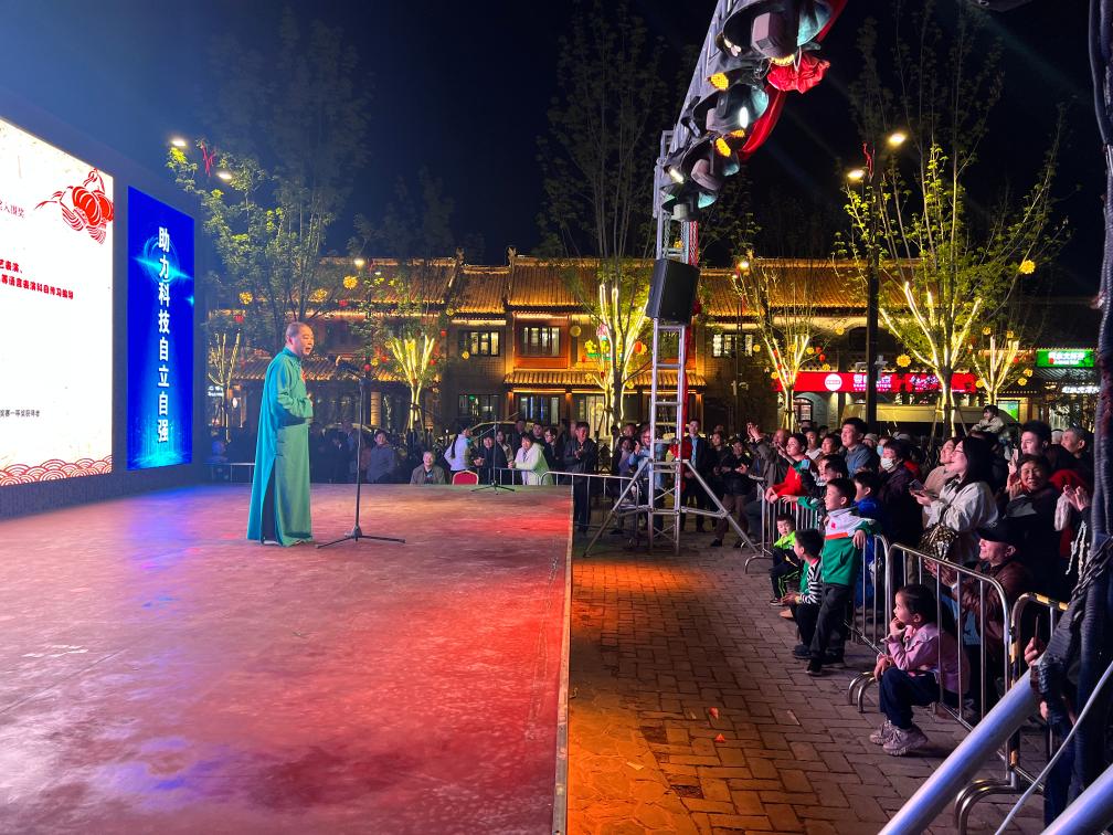 山東菏澤曹州古城廣場上,科普匯演吸引很多群眾觀看。新華社記者 溫競華 攝