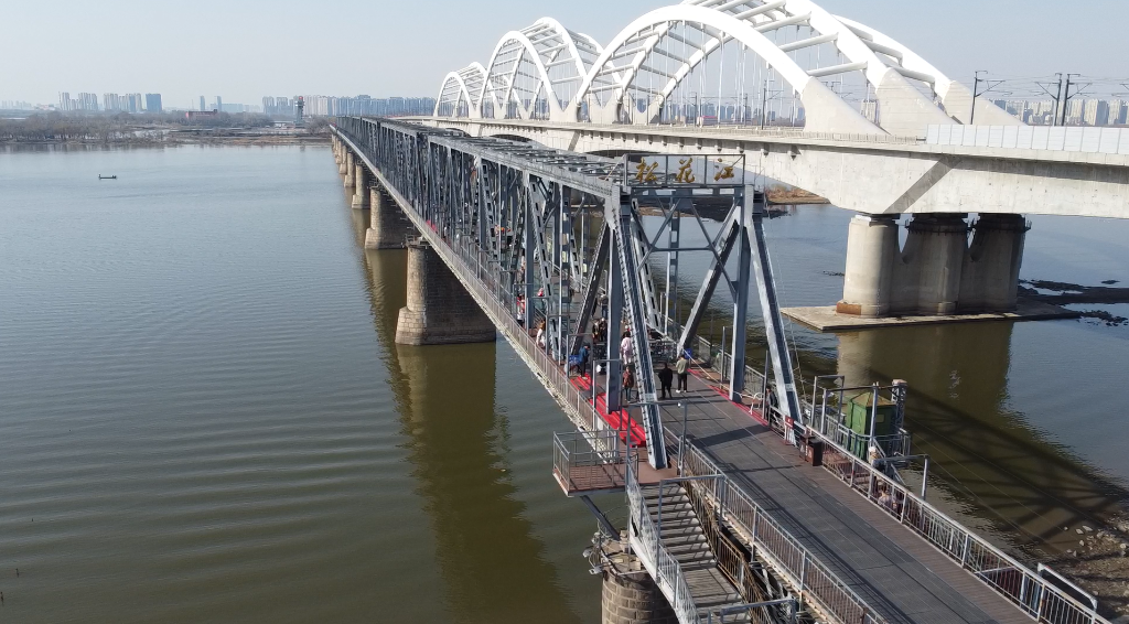 1934年的春,蕭紅與朋友們也曾穿過中東鐵路橋向北而行,她在文章中記錄,“松花江在腳下東流,鐵軌在江空發嘯,滿江面的冰塊,滿天空的白云……看不見綠樹,塞外的春來得這樣遲啊?!?/p>