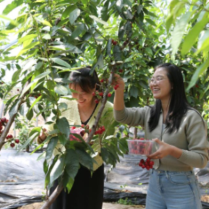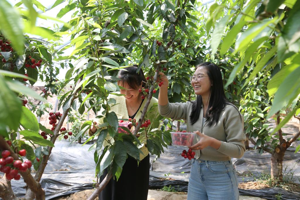 圖為游客到幸福之路蘇木設施農業基地采摘櫻桃。新華社發(特日格樂攝)