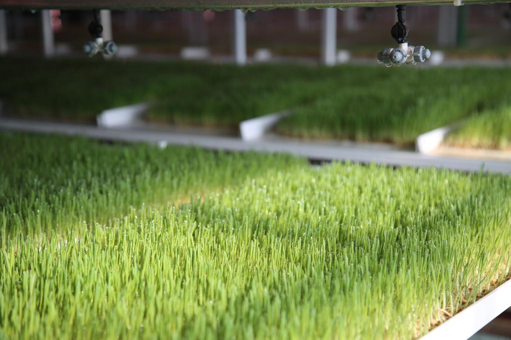 在幸福之路蘇木智慧牧草工廠,牧草長勢旺盛。新華社發(特日格樂攝)
