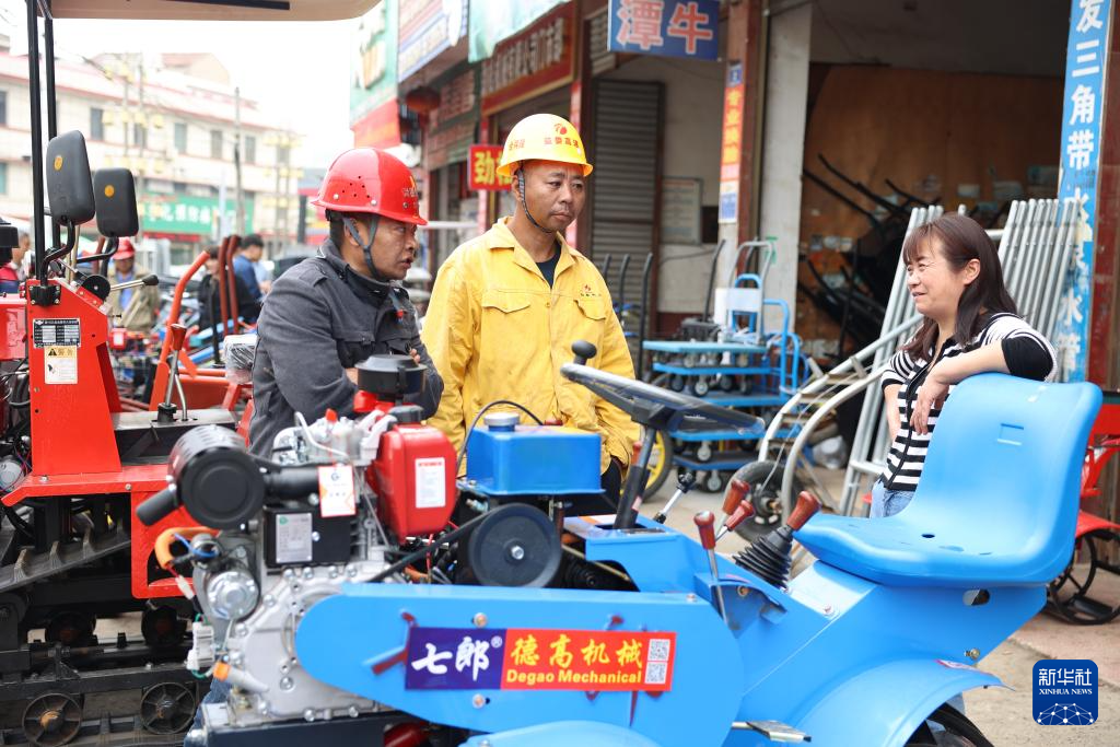 4月24日,顧客在湖南省雙峰縣農機銷售市場選購小型農機。新華社記者 程濟安 攝