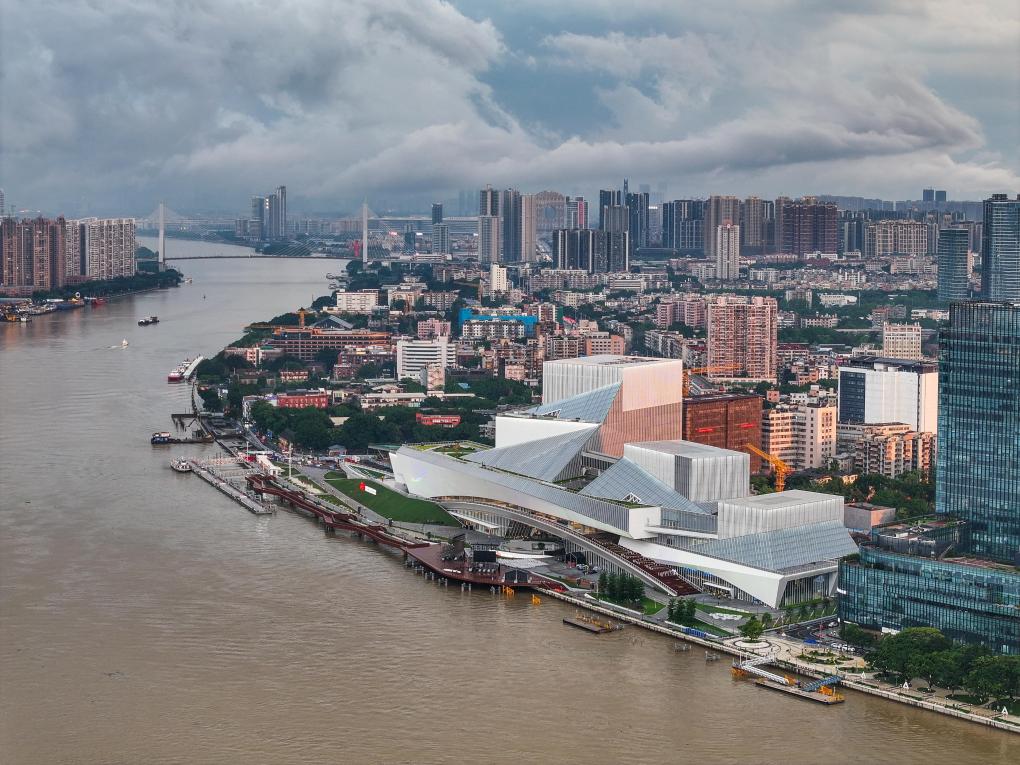 4月27日拍攝的白鵝潭大灣區藝術中心(無人機照片)。新華社記者 劉大偉 攝