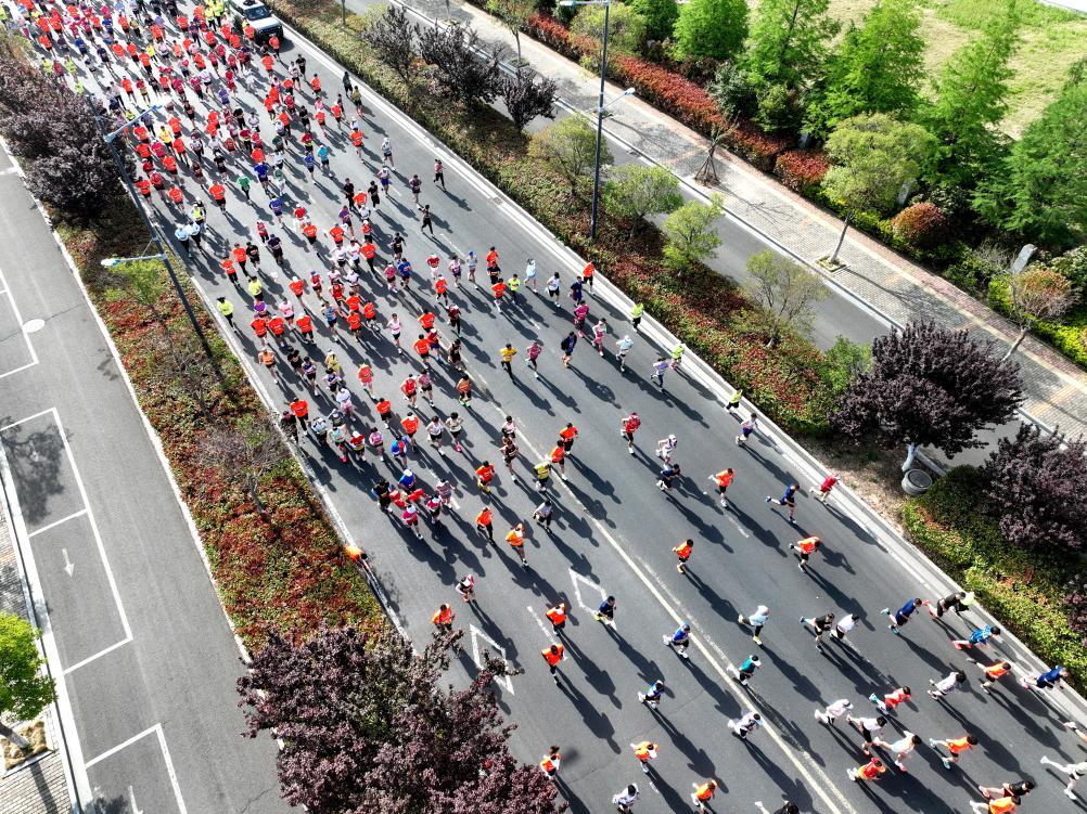 4月27日,連云港全民健身嘉年華暨半程馬拉松舉行。賽事設置男、女半程馬拉松(21.0975公里)、歡樂跑(4.5公里)兩個項目,吸引了2000余名選手參賽。新華社發(王春 攝)