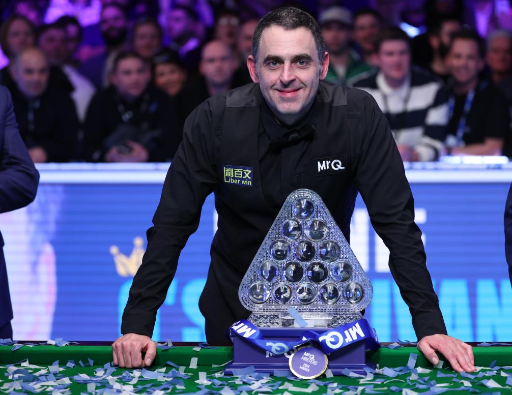 1月14日,在英國倫敦舉行的2024斯諾克大師賽決賽中,英格蘭選手奧沙利文10:7戰勝同胞卡特,獲得冠軍。新華社發(翟政 攝)