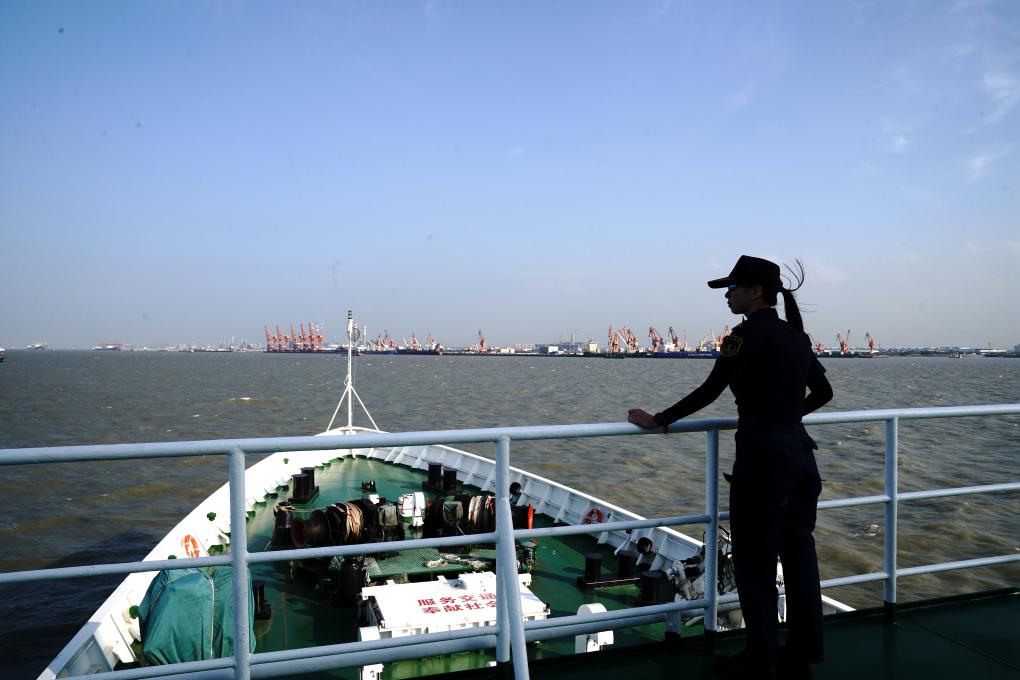 詹春珮在“海巡01”輪守望長江口(2022年6月21日攝)。新華社記者 張建松 攝
