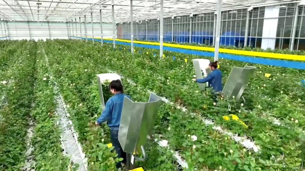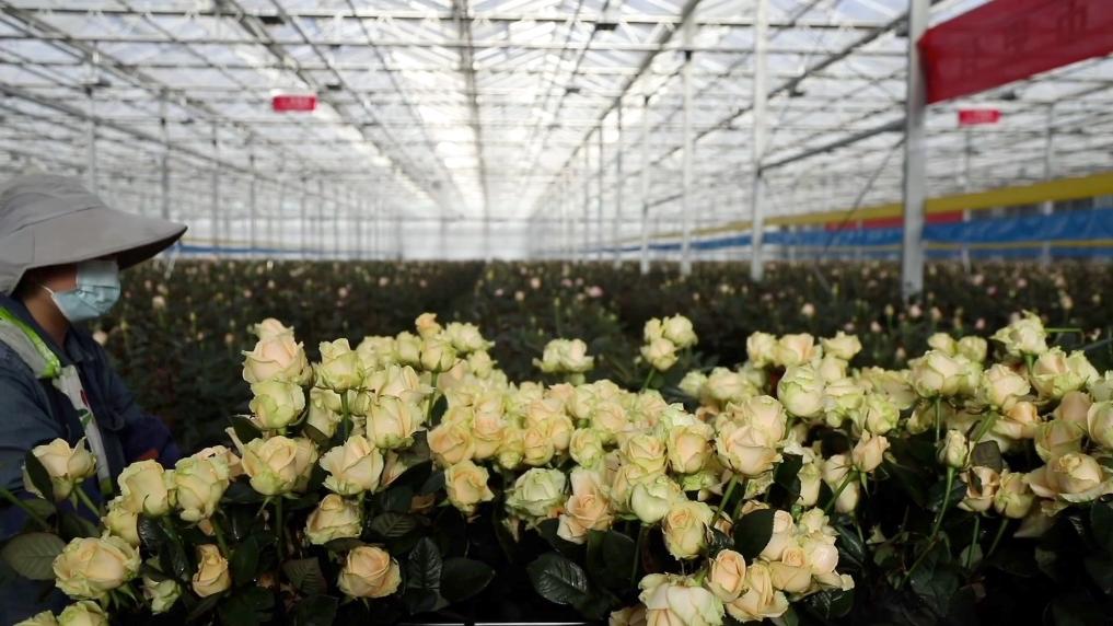 位于甘肅省臨夏市枹罕鎮的百益億農國際鮮花港玫瑰工廠內,不同品種的玫瑰花競相盛開,工作人員忙著采摘打包,一派火熱景象?,F代科技的助力,讓傳統農業變得更加智慧美麗。