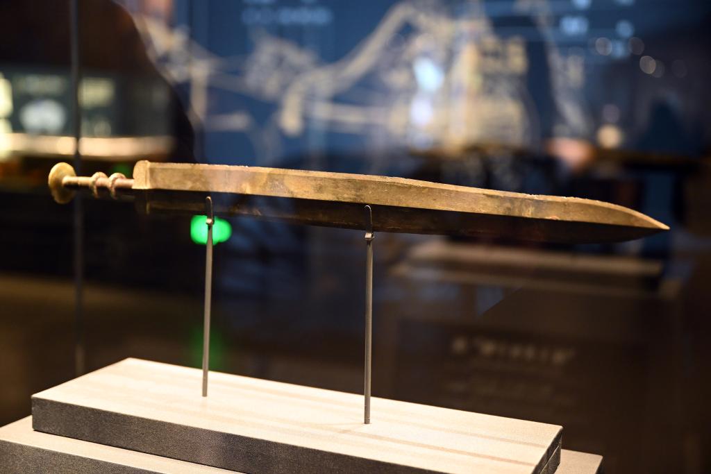 戰國時代,七雄爭霸的號角聲聲不絕。展廳正中,鎮館之寶“越王者旨于賜劍”就是這一時期合縱連橫的見證。