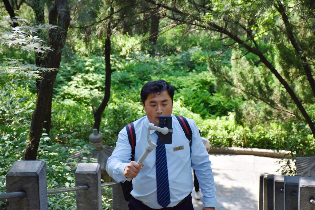 剛入行的時候,馬丁遇到了不小的挑戰。首先是發音問題,“作為一名講解員,我的聲音比較尖銳,不夠悅耳?!苯涍^一段時間的專業發聲訓練,他逐漸掌握了胸腔共鳴的技巧,“現在我屬于男低音,語速也更平緩,讓游客聽著親切些?!?/p>