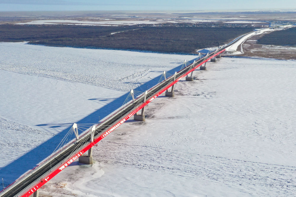 這是2024年1月30日拍攝的黑河-布拉戈維申斯克黑龍江大橋(無人機照片)。新華社記者 謝劍飛 攝