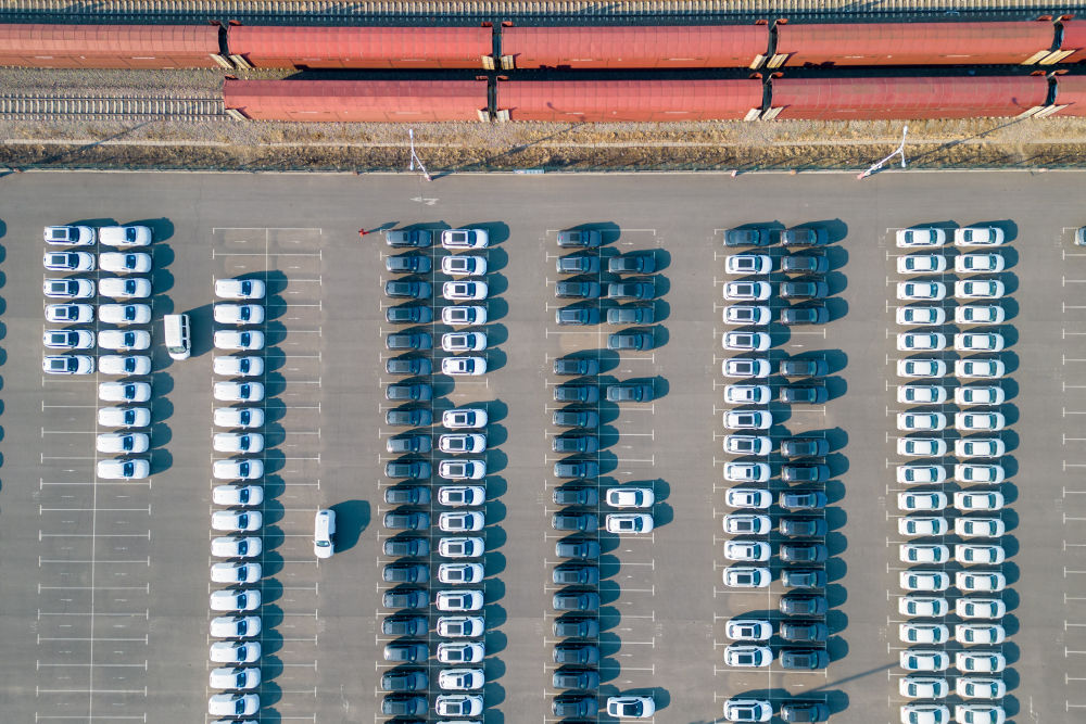 2024年4月8日,工作人員在哈爾濱國際集裝箱中心站進行裝車作業(無人機照片)。新華社記者 張濤 攝