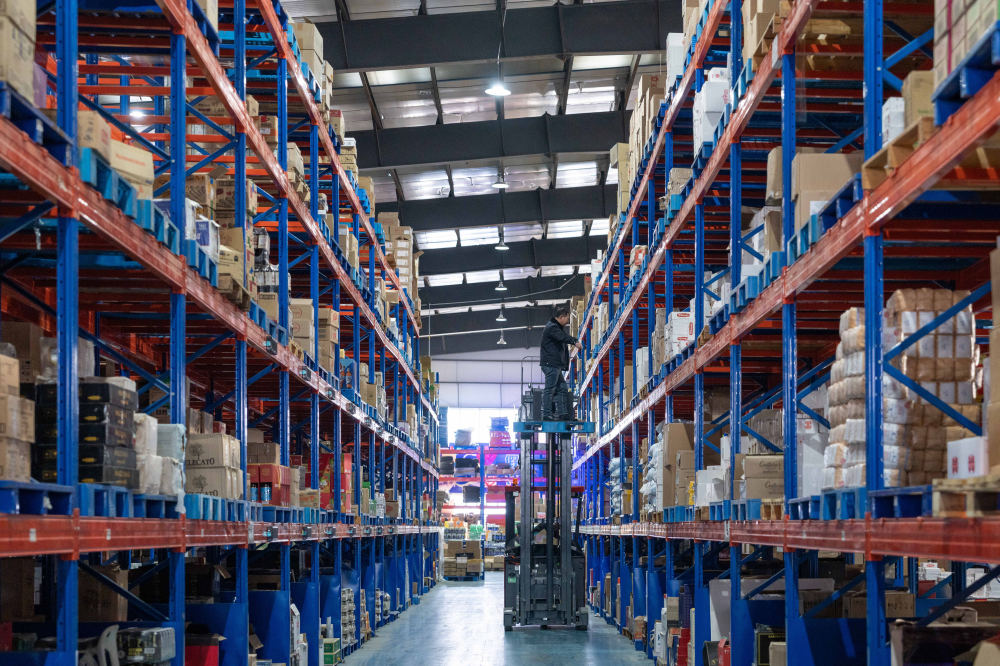 在中國(黑龍江)自由貿易試驗區黑河片區,黑河跨境電商園區智能倉儲物流中心的工人在查找貨物(2024年1月31日攝)。新華社記者 謝劍飛 攝