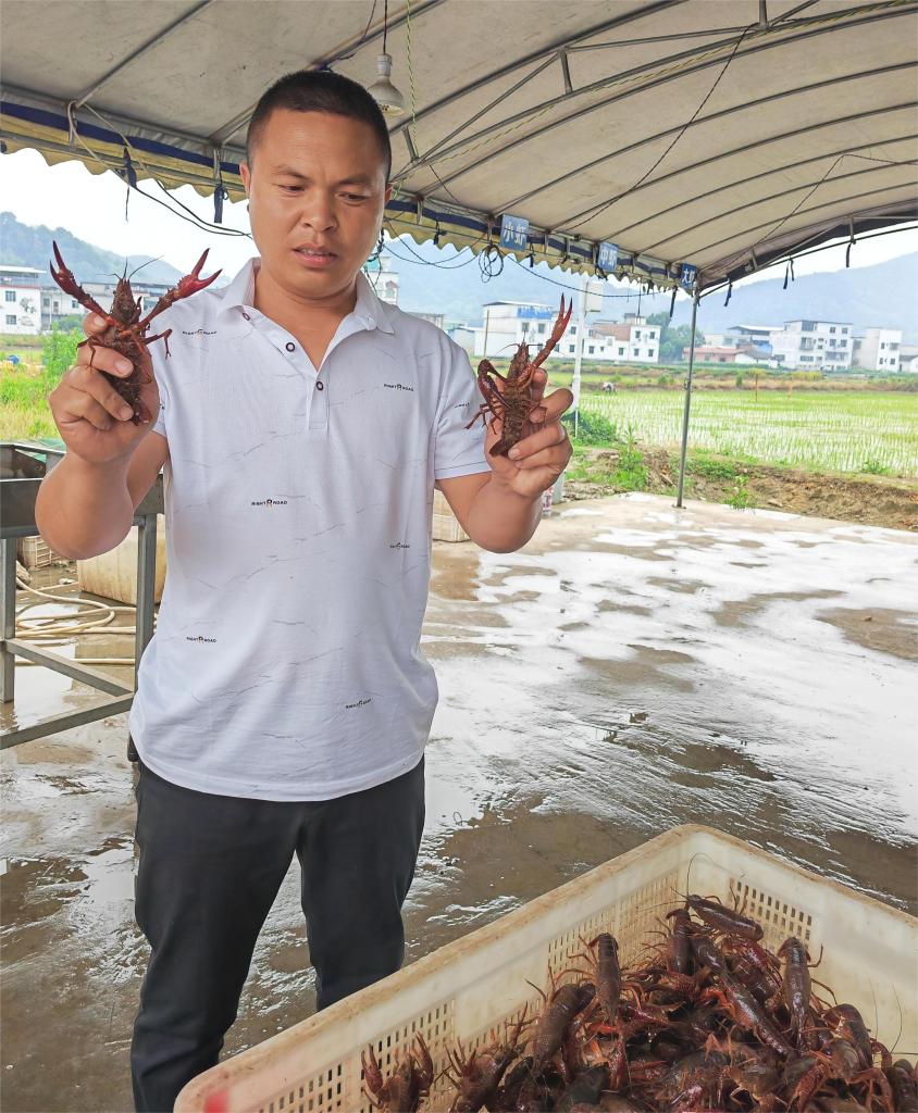 “今年養殖了545畝的小龍蝦,平均每畝產量560斤左右。5月早蝦收完后再種上水稻,平均每畝水稻產量約1000斤,可實現‘一水兩用、稻蝦雙收’?!彼拇s縣長山鎮德勝家庭農場負責人張文君邊聊邊忙著收籠、倒蝦……