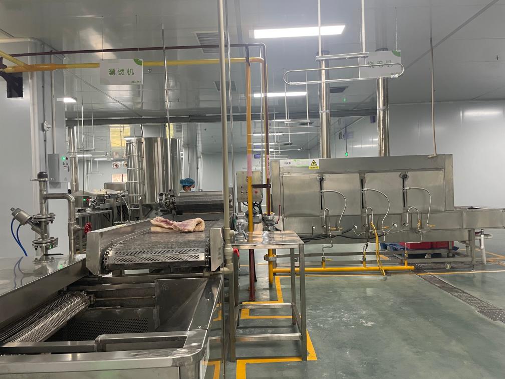 賀州全德食品科技有限公司的預制菜生產間里,豬肉塊正經過漂燙處理。新華社記者李歡 攝