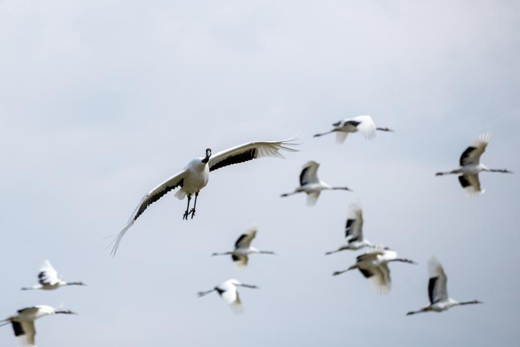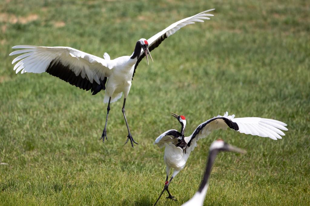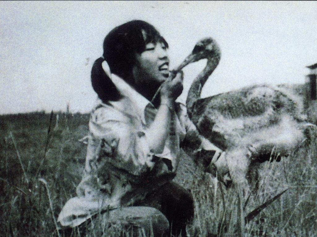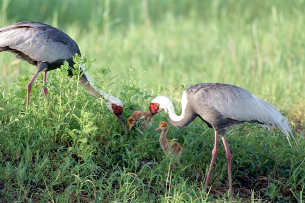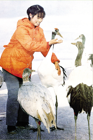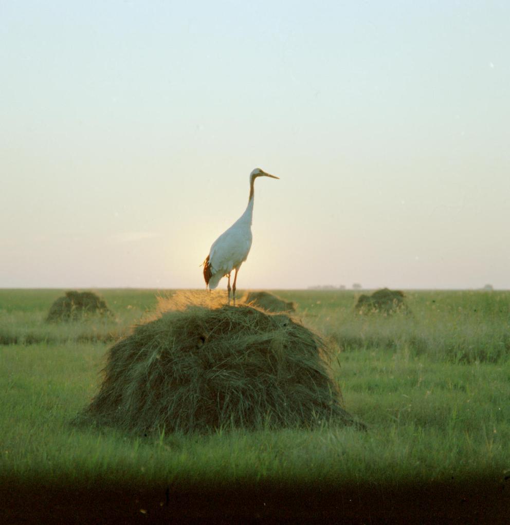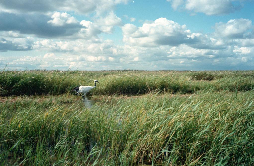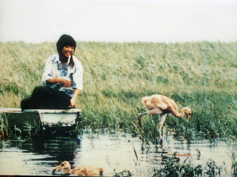 1981年在扎龍自然保護區葦塘中拍攝的丹頂鶴。