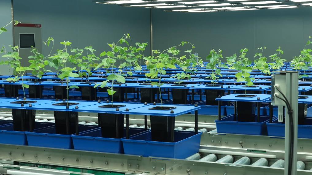 這個育種實驗室被科學家稱為“育種加速器”。實驗室可以模擬大豆生長的特定環境,可將大豆一季生長時間從近六個月縮短至五六十天??茖W家把分子設計育種技術和“育種加速器”應用結合起來,大大提高了育種效率。
