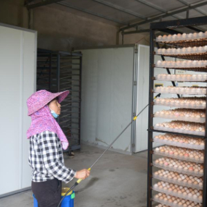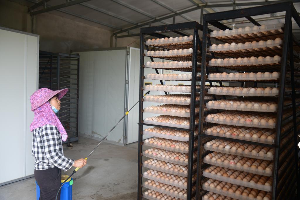 工人正在為即將送入智能孵蛋機的雞蛋消毒。新華社記者李昊澤 攝