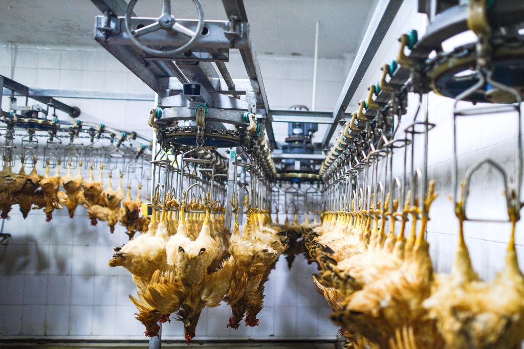 標準化屠宰車間里,河田雞正在等待加工。新華社記者李昊澤 攝