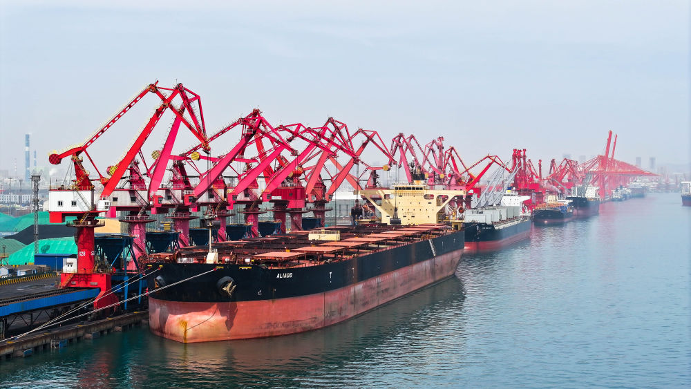 每天,來自山西、陜西等沿黃省份的煤炭、鐵礦石等大宗貨物在日照港裝船后,運至東南沿海各大電廠、煉鋼廠及重點企業?!叭照崭凼俏覈髅簴|運、北煤南運的重要沿海港口,依托海鐵聯運,提高了沿黃內陸城市貨物出口效率?!鄙浇逛N售日照有限公司副總經理梁勝說。