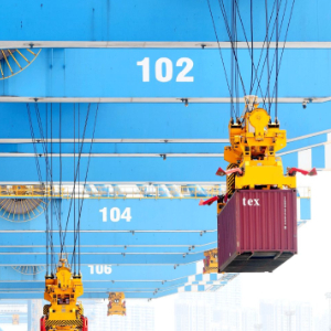 在山東港口青島港前灣港區南岸,滿載貨物的巨輪緩緩??吭跓o人值守的碼頭。碼頭上,自動化橋吊巍然屹立,自動導引車往來穿梭,自動化軌道吊快速運轉,重達數十噸的集裝箱被輕巧抓起、精準堆碼。
