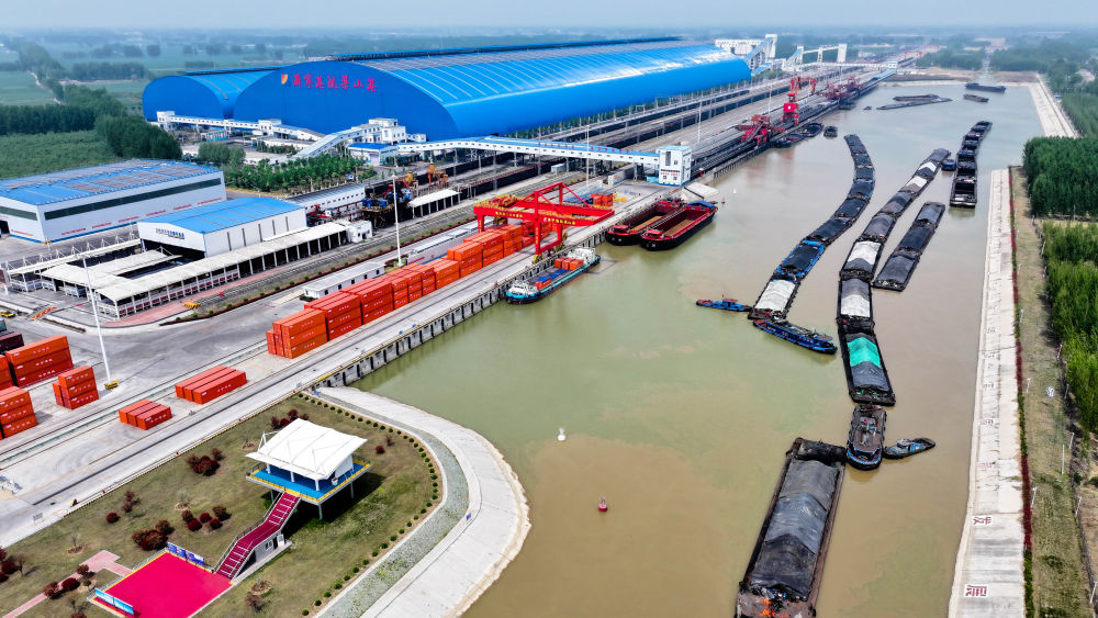 距離向西開行的濟鄭高鐵百公里外,長江以北最大的內河港口梁山港一派繁忙,貨物在此乘船南下,最遠可達重慶萬州、四川宜賓等地。