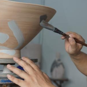 相比于傳統書法,陶瓷書法不僅要在筆墨線條上下功夫,還要充分了解陶瓷材料性質、色釉以及燒制溫度等,拉坯、利坯、吹釉等傳統陶瓷制作工序也得掌握。