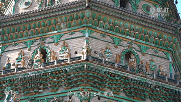 琉璃建筑構件是泥胎在上千度的高溫下燒制而成,外表晶瑩剔透、光彩奪目。中國的琉璃燒制技藝在明代正德、嘉靖、萬歷年間達到了鼎盛時期,飛虹塔就修建于這一時期,是中國琉璃塔的代表之作。