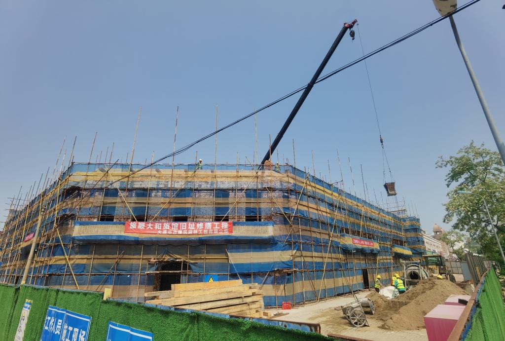 5月22日拍攝的旅順大和旅館舊址修繕工程現場。新華社記者 楊湛菲 攝