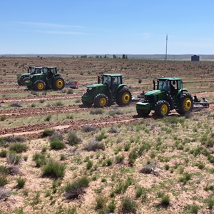 杭錦旗林草局副局長李樹鵬說:“過去,我們肩扛手抬檸條進沙漠,采用人工挖溝的方式種檸條,每人1天最多能種500株?,F在,我們利用鉤機、播種機等機械種植,1臺車1天能種2.2萬株,大大提高了造林效率?!?/p>