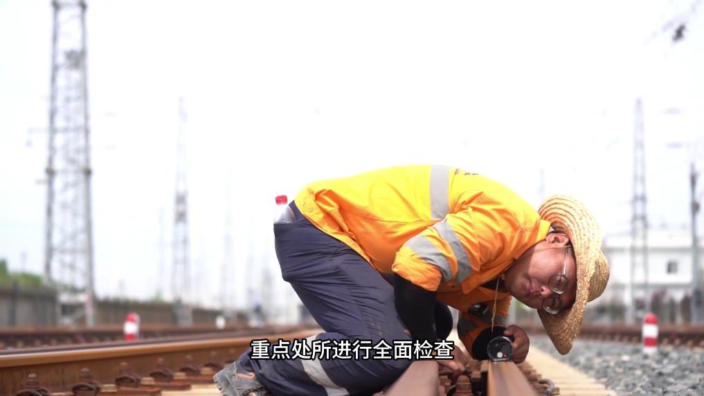 正午時分,濟南西站的氣溫接近40攝氏度。為了應對脹軌風險,國鐵濟南局工務段的線路工人們來到防脹工作重點地段,加強對無縫岔區、股道、絕緣設備以及小半徑曲線等關鍵部位的檢查。
