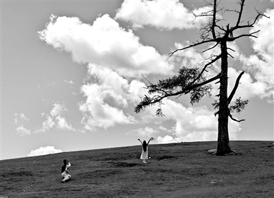 圖為新疆阿勒泰地區哈巴河縣,游客在“孤獨的樹”下拍照留影。新華社記者 茍立鋒 攝