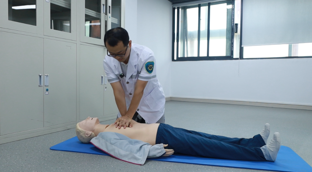 “在救護車來之前,實施正確的心肺復蘇,能及時拯救生命?!彼拇ㄊ」强漆t院應急管理科科長、副主任醫師劉志剛介紹,心肺復蘇一般有八個步驟:一是判斷患者意識,可以輕拍患者肩膀,高聲呼喊;二是覺察到患者無反應后,應立即高聲呼救;三是將患者翻成仰臥姿勢,放在堅硬的平面上,同時松開衣褲、松開腰帶;四是判斷呼吸,看患者胸部有無起伏,判斷呼吸的時間不能少于5至10秒;五是判斷脈搏,判斷脈搏的時間也不能少于5至10秒;六是胸外心臟按壓,按壓部位是胸部正中兩乳連接水平處,救護員應該雙手掌根同向重疊,十指相扣,掌心翹起,手指離開胸壁,雙臂伸直,上半身前傾,以髖關節為支點,垂直向下、用力、有節奏地按壓30次,按壓與放松的時間相等,下壓深度5至6厘米,按壓頻率為100至120次/分鐘;七是打開氣道;八是口對口人工呼吸。