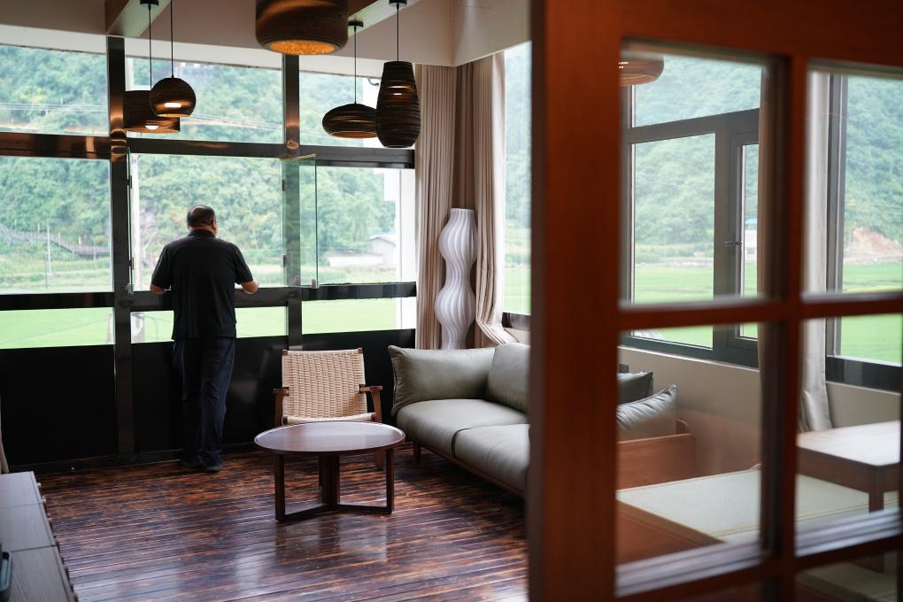 在旬陽市仁河口鎮橋上村,過去的農家樂逐步升級成為一家家山莊、酒店、民宿,受到游客青睞。步入村里一間小型酒店的“山景房”,屋內可見簡潔精致的現代陳設,窗外則是群山環抱千畝水稻田的蒼翠景色。