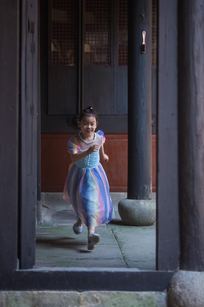 ↑7月10日,邱芮伊在寧波慈城古縣城奶奶居住的老屋內玩耍。