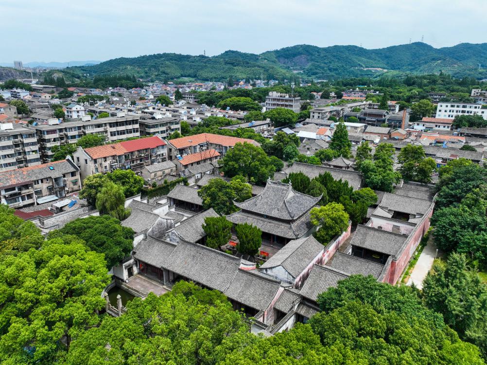 ↑這是寧波慈城古縣城內的孔廟古建筑(無人機照片,7月9日攝)。