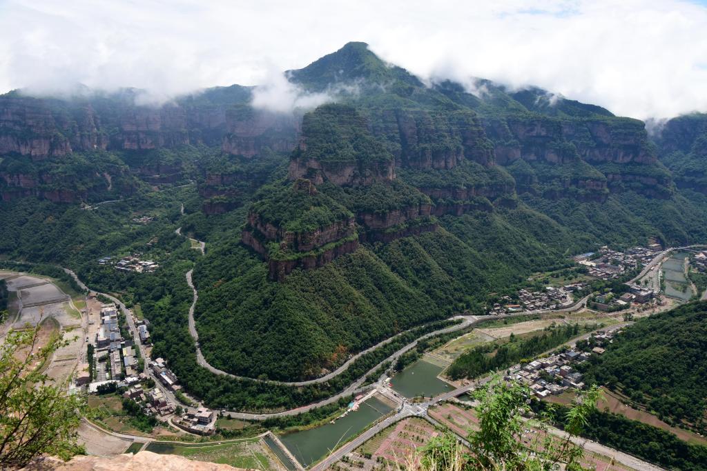 夏日清晨,一場雨后,太行大峽谷云霧繚繞。巖壁之上,蔥郁的植被盎然生長,緋紅的巖石層層堆疊,群峰競秀,盡顯大自然的鬼斧神工。