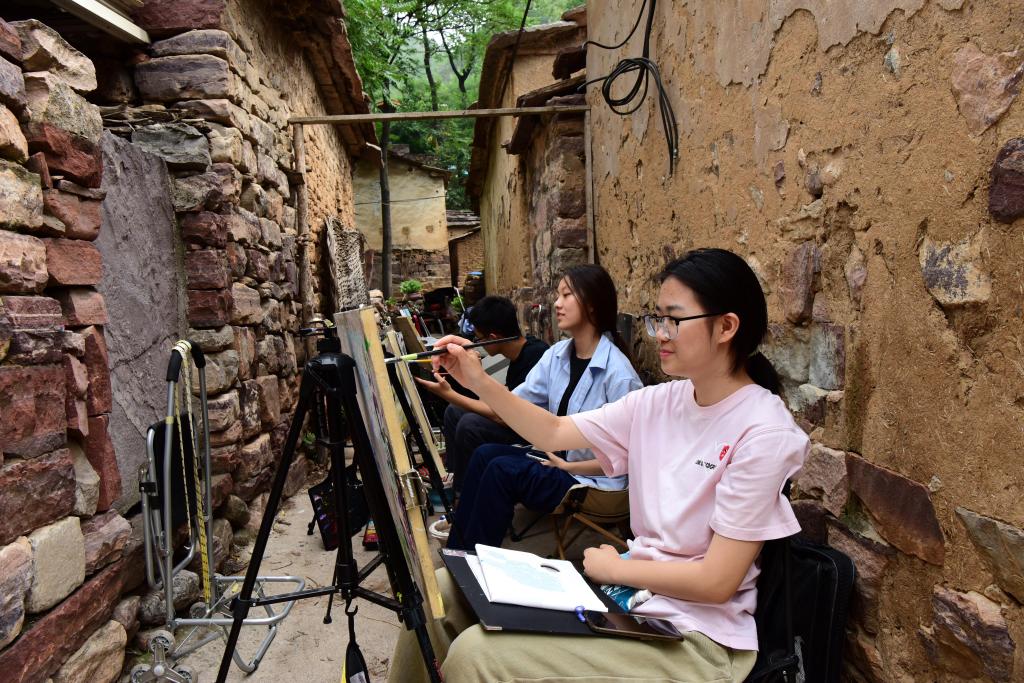 學生在林州市石板巖鎮寫生。新華社記者 朱祥 攝