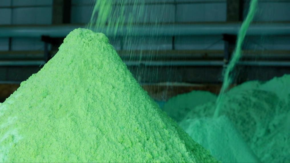 近幾年來,白銀市推廣使用硫酸亞鐵進行鹽堿地改良。硫酸亞鐵俗稱“鐵肥”和“綠礬”,能夠通過化學中和反應降低土壤的堿性,同時置換出土壤中的鈉離子,減少有害鹽分的積累,從而改善土壤性質,為植物生長創造更有利的土壤環境。自2021年起,作為連接工業與農業之間的橋梁,硫酸亞鐵在白銀當地實現了就地產出,就地消化,成為改良土壤的“魔法劑”,使這里更多的鹽堿灘變成了“米糧川”。