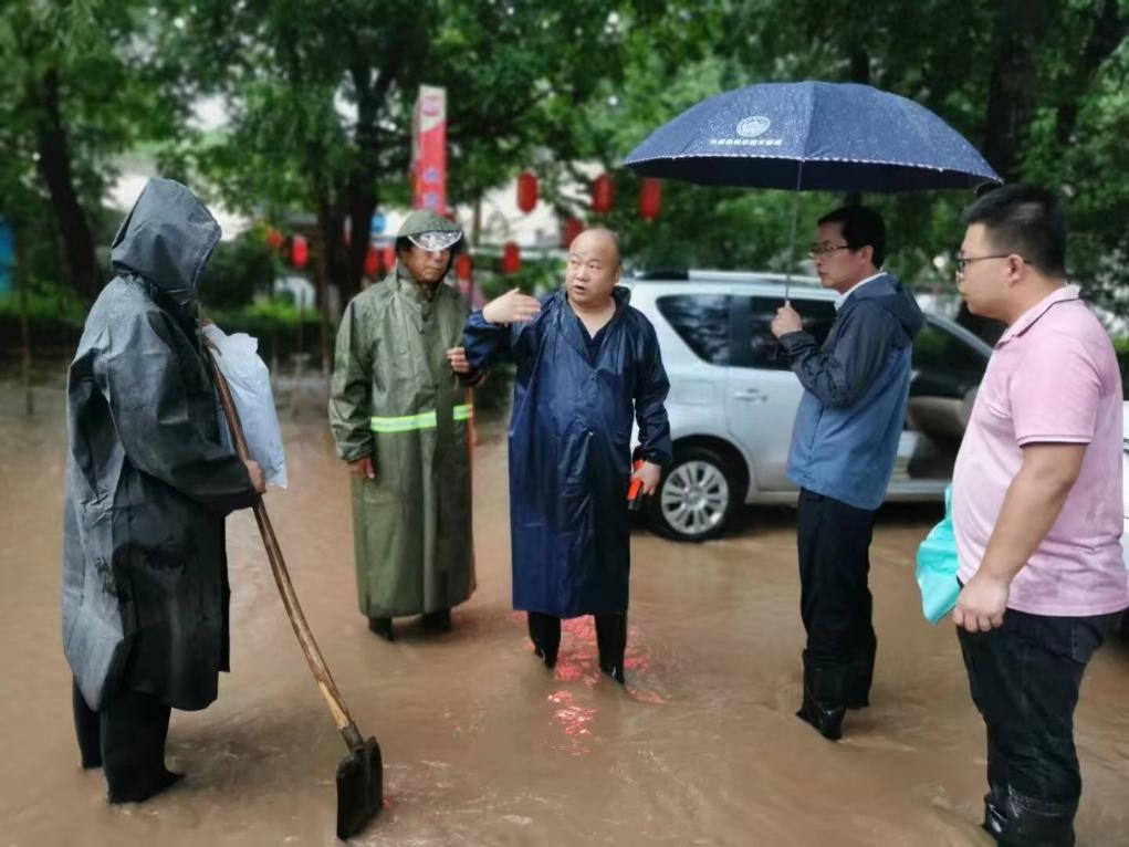 圖為陜西省長武縣丁家鎮黨委書記劉軍倉(右三)在一線現場指揮防汛。(長武縣委宣傳部供圖)