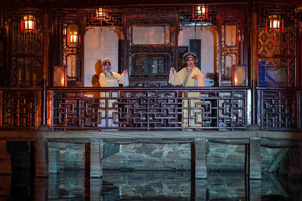 入夜時分,游人們踏著青磚石板,清麗婉約的歌聲自河上飄來……滄浪亭里演出實景版昆曲《浮生六記》,世界文化遺產與世界非物質文化遺產聯袂,令人入迷。
